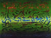 The top layer of color as well as the marks or 'strokes' unveiling the under color are in response and reaction to the particular resulting color ‘vibration’ which appears, and the obvious 'feeling' that was evoked.