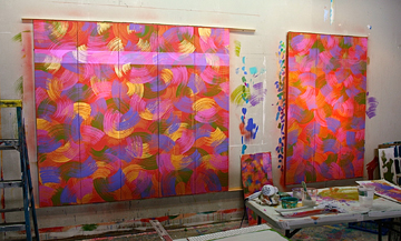 ![]() DESCRIPTION A new series of paintings on hinged canvas panels. Startling, vivid patterns, exciting colors, created withcustom handcrafted brushes. The collection includes Each piece is unique, and individually signed by the artist. |